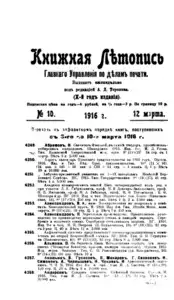 Книжная летопись Основной выпуск << < 1916 № 10 > >> |