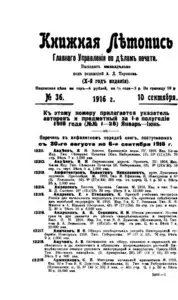 Книжная летопись Основной выпуск << < 1916 № 36 > >>
