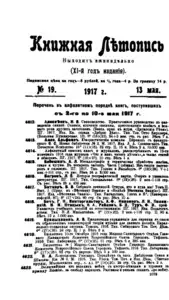 Книжная летопись Основной выпуск << < 1917 № 19 > >> |