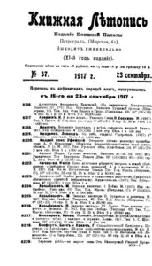 Книжная летопись Основной выпуск << < 1917 № 37 > >> |