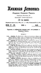 Книжная летопись Основной выпуск << < 1918 № 17-20 > >> |
