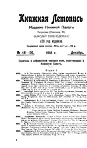 Книжная летопись Основной выпуск << < 1918 № 46-50 > >> |