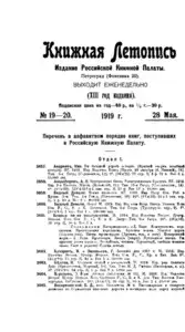 Книжная летопись Основной выпуск << < 1919 № 19-20 > >>