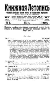 Книжная летопись Основной выпуск << < 1921 № 5 > >> |