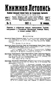 Книжная летопись Основной выпуск << < 1922 № 2 > >>