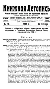 Книжная летопись Основной выпуск << < 1922 № 18 > >> |