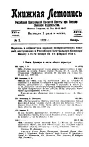 Книжная летопись Основной выпуск << < 1923 № 2 > >> |