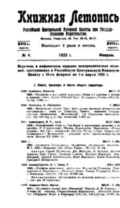 Книжная летопись Основной выпуск << < 1923 № 4 > >> |