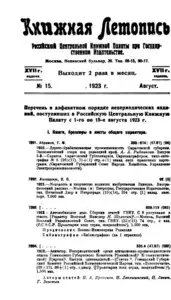 Книжная летопись Основной выпуск << < 1923 № 15 > >> |