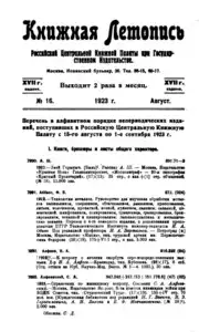 Книжная летопись Основной выпуск << < 1923 № 16 > >> |