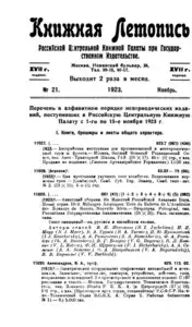 Книжная летопись Основной выпуск << < 1923 № 21 > >> |