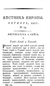 Вестник Европы издаваемый Николаем Карамзиным << < 1807 № 19 / т.35 вып.3 > >> |