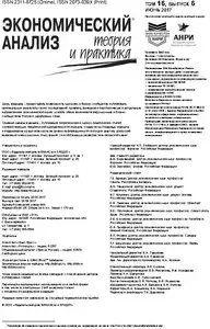 Экономический анализ: теория и практика << < 2017 № 6 / т.16 > >>