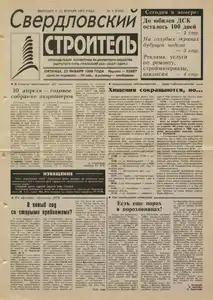 Свердловский строитель 1974-2002 << < 1998 № 3 (23 янв.) > >>